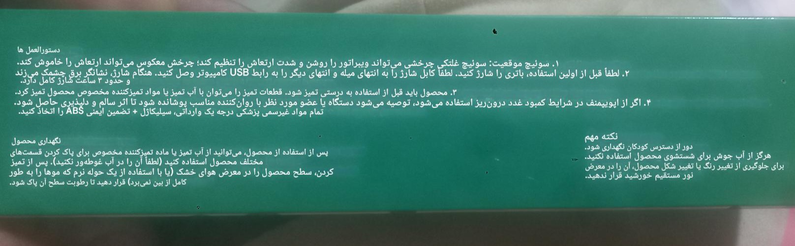این ویبره شارژی بوده و با هر بار شارژ، 2 تا سه ساعت میتواند کار کند.