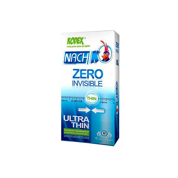کاندوم فوق العاده نازک و نامرئی Zero Invisible Ultra Thin ناچ کدکس به طور بسیار نازک و ساده طراحی میشود که برای افرادی که قصد استفاده از کاندوم ندارند و فقط برای مراقبت جنسی به آن نیاز دارند مناسب میباشد. جنس به کار رفته در این کاندوم از نوعی است که با وجود ضخامت بسیار کم اما مقاومت خیلی خوبی دارد و از مواد اولیه طبیعی و ضد حساسیت ساخته شده است. پهنای این کاندوم 52 میلی متر است و طول آن تقریبا 170 میلی متر می باشد.